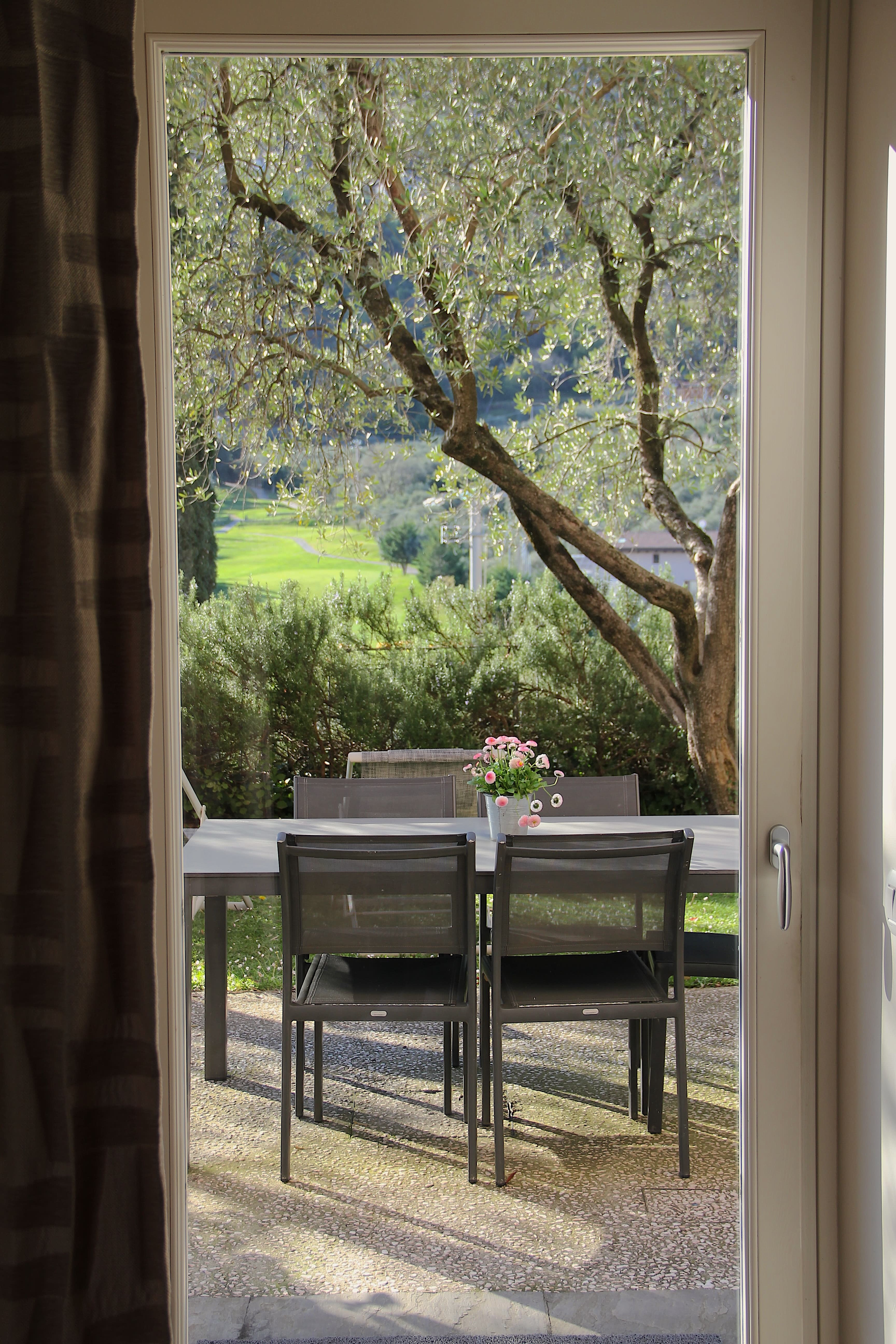 Three-room apartment for 2/4 people on the ground floor with private garden overlooking the golf course, of 69 sqm, one double bedroom, a bedroom with two single beds, living room with kitchenette and sofa, bathroom with bath and shower.